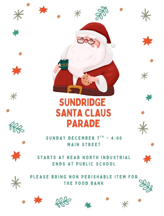 The Santa Claus Parade is on Main Street from Near North Industrial to the Public School starting at 4:00pm